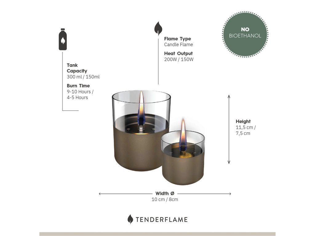 Aranžujte je spolu nebo každou zvlášť a sledujte, jak jejich čisté plameny (hořící 100x čistěji než čajová svíčka) promění váš domov v oázu klidu. Samozřejmostí je provoz bez kouře, zápachu a sazí.